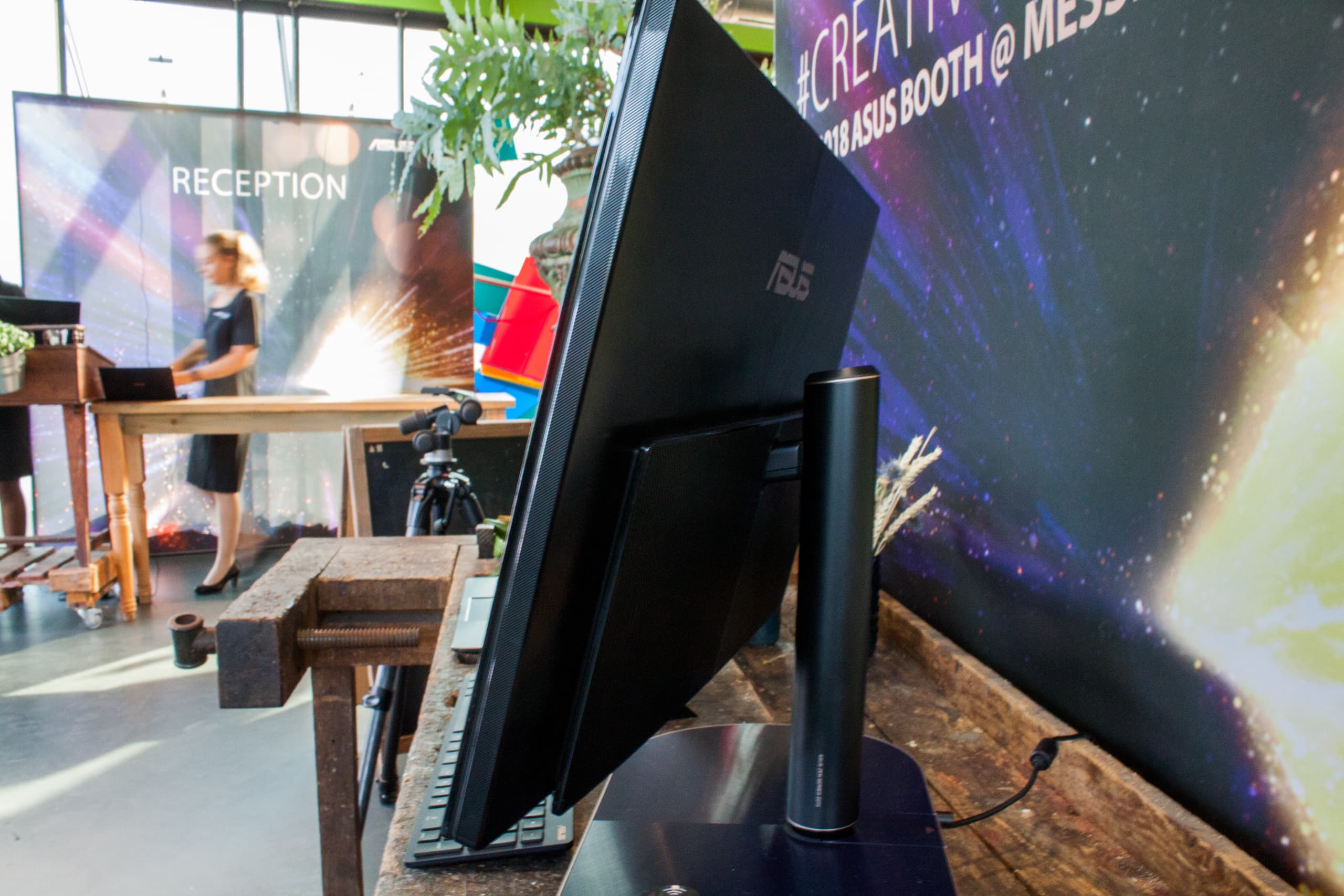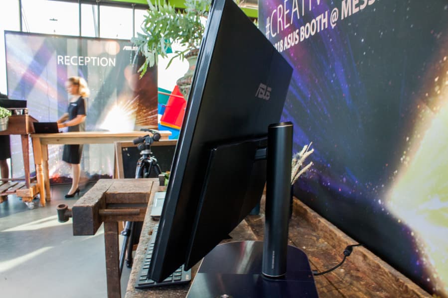 Беспроводные зарядки в качестве интегрированного элемента появились сначала в мониторах, а потом добрались и до моноблочных компьютеров. Вот и обновленный Asus Zen AiO 27 предлагает возможность беспроводной подзарядки смартфона: если мобильное устройство совместимо со стандартом Qi, то его всего лишь надо будет положить на основание подставки. К слову, сама подставка позволяет регулировать не только наклон и высоту, но еще и поворачивать дисплей моноблока влево и вправо.