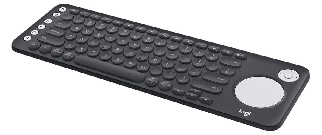 А вот европейская новинка другого толка – тонкая клавиатура Logitech K600, предназначенная для работы с современными телевизорами. Стандартный клавиатурный блок здесь сочетается с сенсорной площадкой управления курсором, четырехпозиционной клавишей с вписанной в центр кнопкой «ОК», клавиши быстрого доступа к самым востребованным функциям медиапроигрывателя.