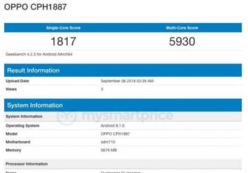 Модель Oppo CPH1887 получила 6 ГБ оперативной памяти