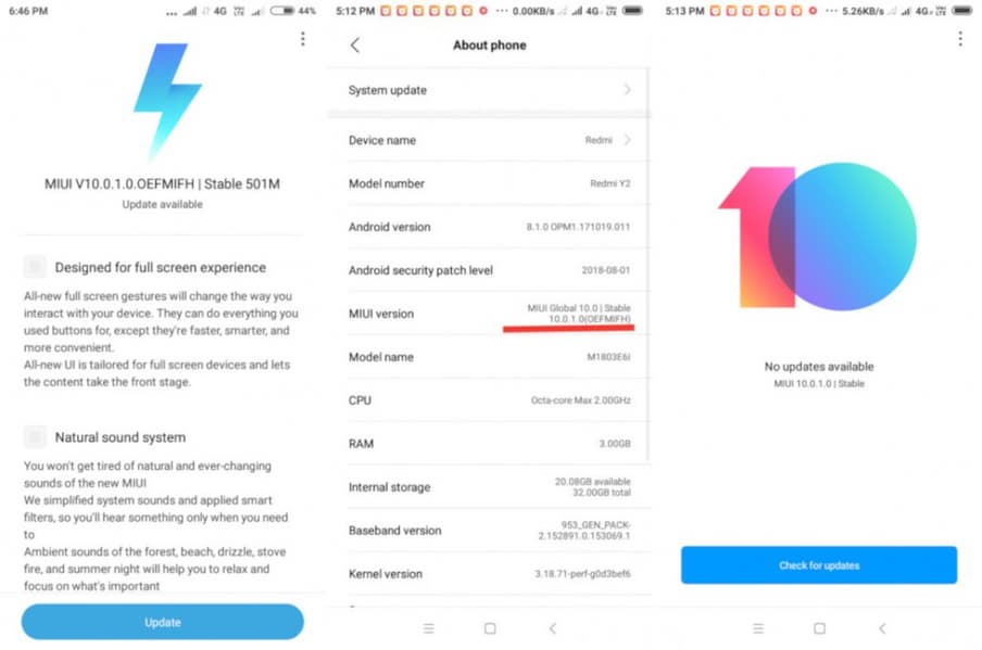 Прошивка MIUI 10 Global Stable ROM доступна в виде обновления «по воздуху» с номером MIUI 10.0.1.0.OEFMIFH. Апдейт весит 501 МБ. Обновление приносит не только стандартные для MIUI 10 новшества, но и августовское обновление безопасности Android.