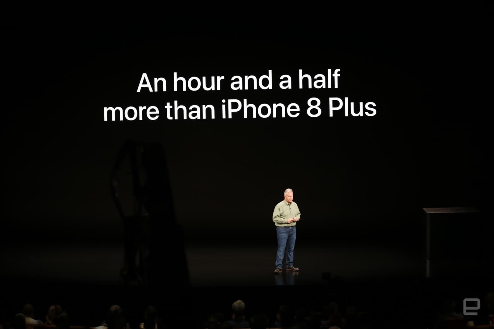 Представлял iPhone XR Фил Шиллер (Phil Schiller) - старший вице-президент Apple по глобальному маркетингу. Так вот он очень емко и кратко охарактеризовал автономность новинки: на полтора часа больше, чем у iPhone 8 Plus.