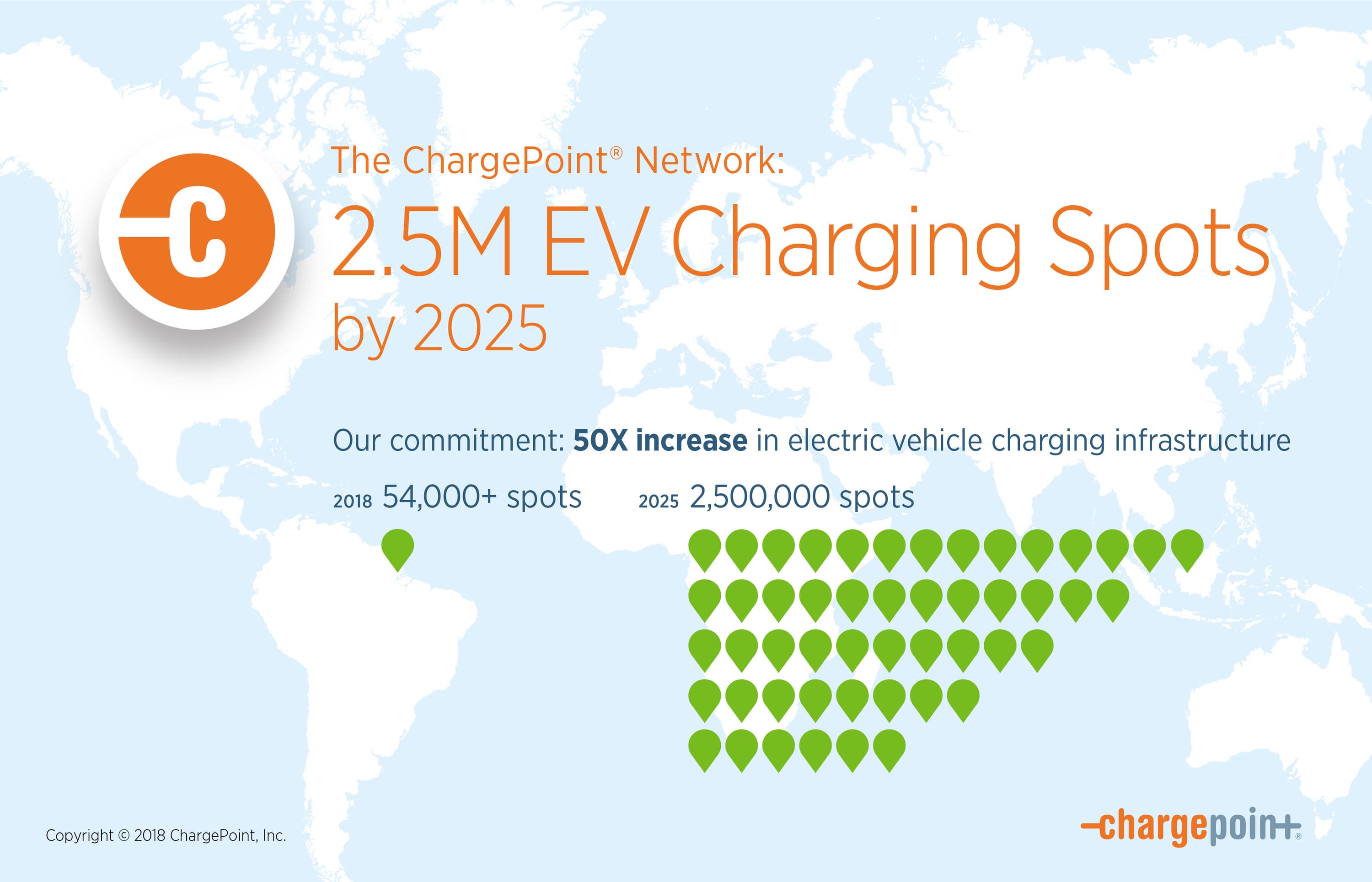 В ходе мероприятия Global Climate Action Summit 2018 компания ChargePoint, называющая себя «лидирующей мировой сетью зарядных станций для электромобилей», объявила о намерении к 2025 году довести число своих станций до 2,5 миллионов. Эффект от реализации этого плана оценивается как сокращение выбросов парниковых газов почти на два миллиона тонн.