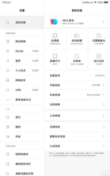 Планшеты Xiaomi Mi Pad 4 и Xiaomi Mi Pad 4 Plus начали получать бета-версию прошивки MIUI 10 под номером 8.9.13.