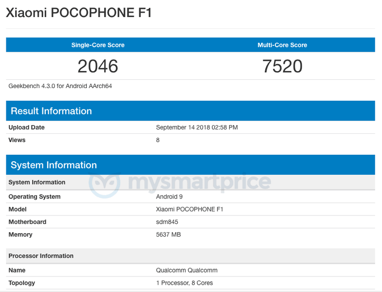 В однопоточном тесте смартфон набрал 2046 баллов, а в многопоточном — 7520 баллов. Эти результаты заметно ниже тех, что выдавал Pocophone F1 на основе Android 8.1 Oreo. Судя по всему, компания всё ещё тестирует новую версию Android, что обычно включает много работы по оптимизации, в том числе и по повышению производительности.