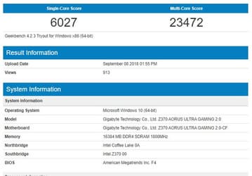 CPU Intel Core i5-9600K протестирован в Geekbench, результаты даже ниже, чем у Intel Core i5-8600K