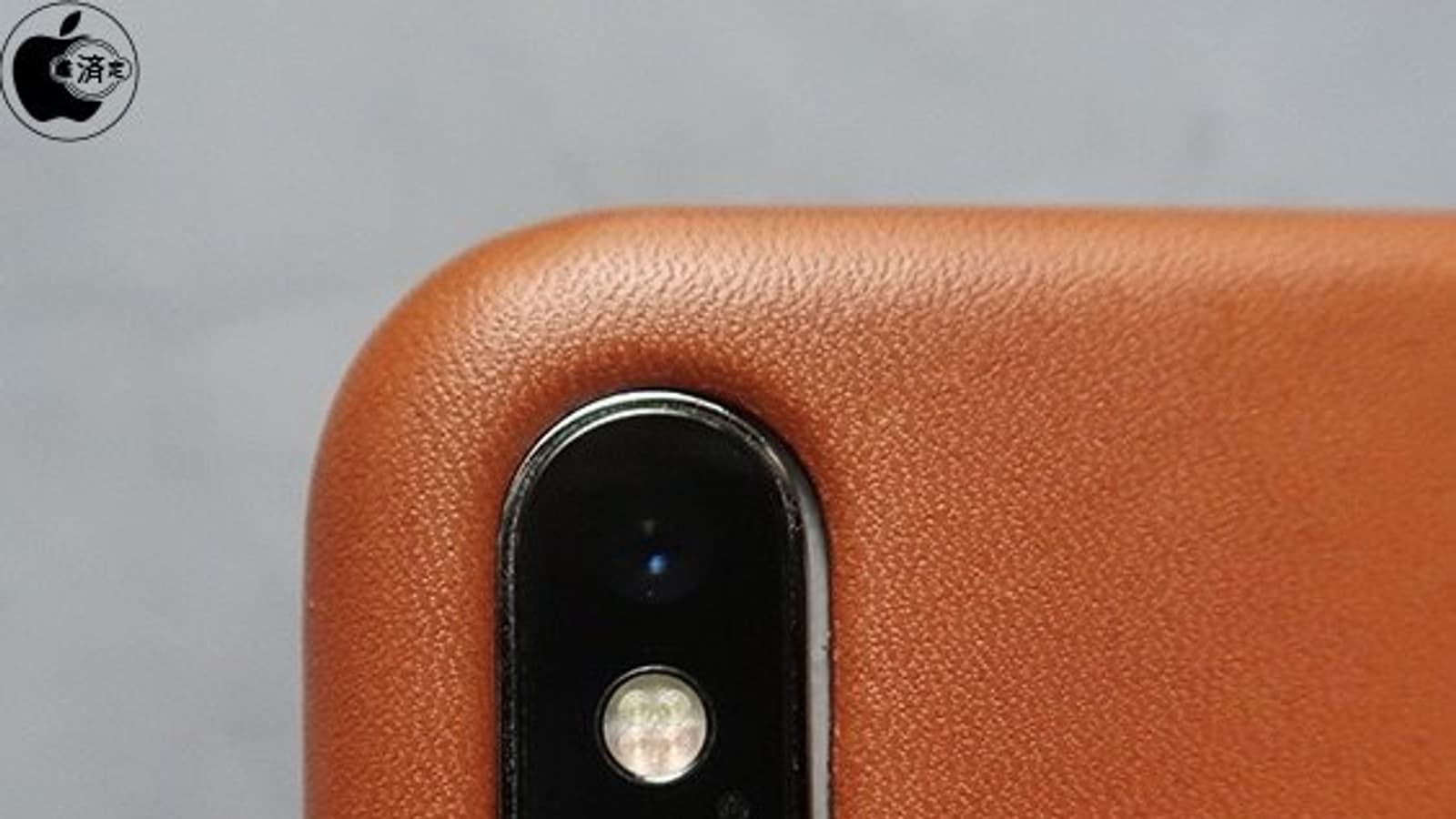 На фото показан iPhone X с новым кожаным чехлом Apple для iPhone XS. Можно легко заметить, что вырез под камеру у чехла больше, чем требуется для iPhone X.