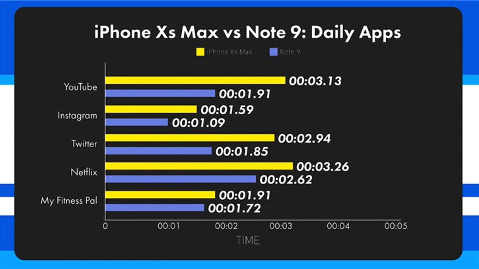 Что интересного, однозначного победителя выявить не удалось. Если оценивать время открытия популярных приложений, вроде YouTube, Instagram, Twitter и проч., то Galaxy Note9 оказался победителем с разницей, которая иногда составляет доли секунды.