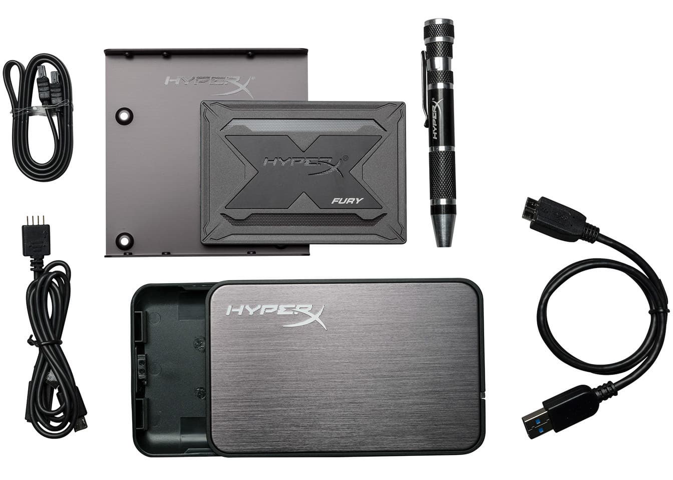 В Kingston HyperX Fury RGB используется контроллер Marvell 88SS1074 и флэш-память TLC NAND с объемной компоновкой объемом 240, 480 или 960 ГБ. Скорости последовательного чтения и записи при подключения к интерфейсу SATA 6 Гбит/с составляют, соответственно, 550 и 480 МБ/с, но при подключении по USB они, конечно же, будут меньше.