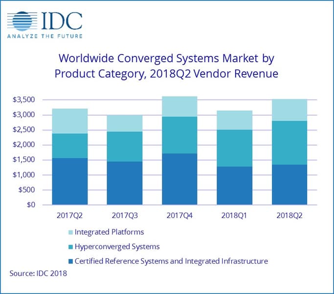 По подсчетам специалистов аналитической компании IDC, рынок конвергентных систем во втором квартале 2018 года достиг 3,5 млрд долларов. Это на 9,9% больше показателя за второй квартал прошлого года. Под конвергентными в IDC понимают системы, включающие вычислительные, сетевые ресурсы и ресурсы хранения данных. Это готовые, протестированные решения, поддерживающие виртуализацию и оптимизированные для различных задач. Такие системы легко встраиваются в имеющуюся инфраструктуру благодаря программно-определяемой специализации.