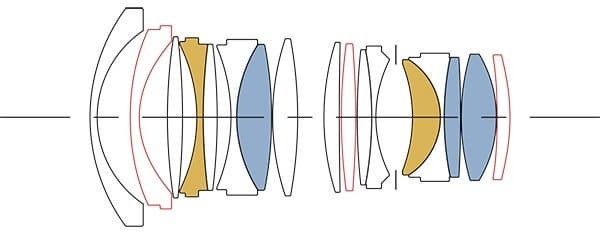 - Конструкция объектива — 17 элементов в 12 группах, включая два элемента FLD и три SLD;
