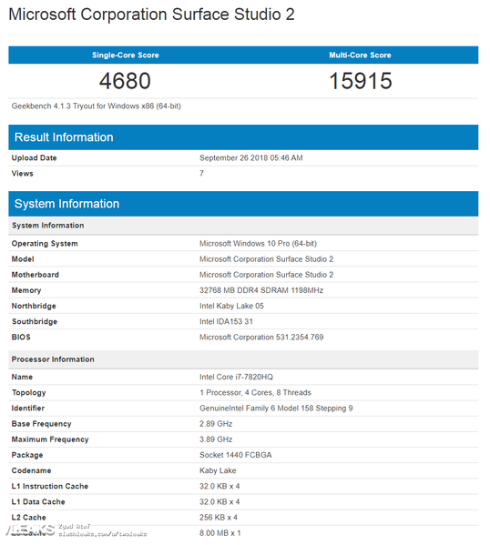В базе данных тестового Geekbench появились результаты тестирования еще неанонсированного моноблока Microsoft Surface Studio 2.