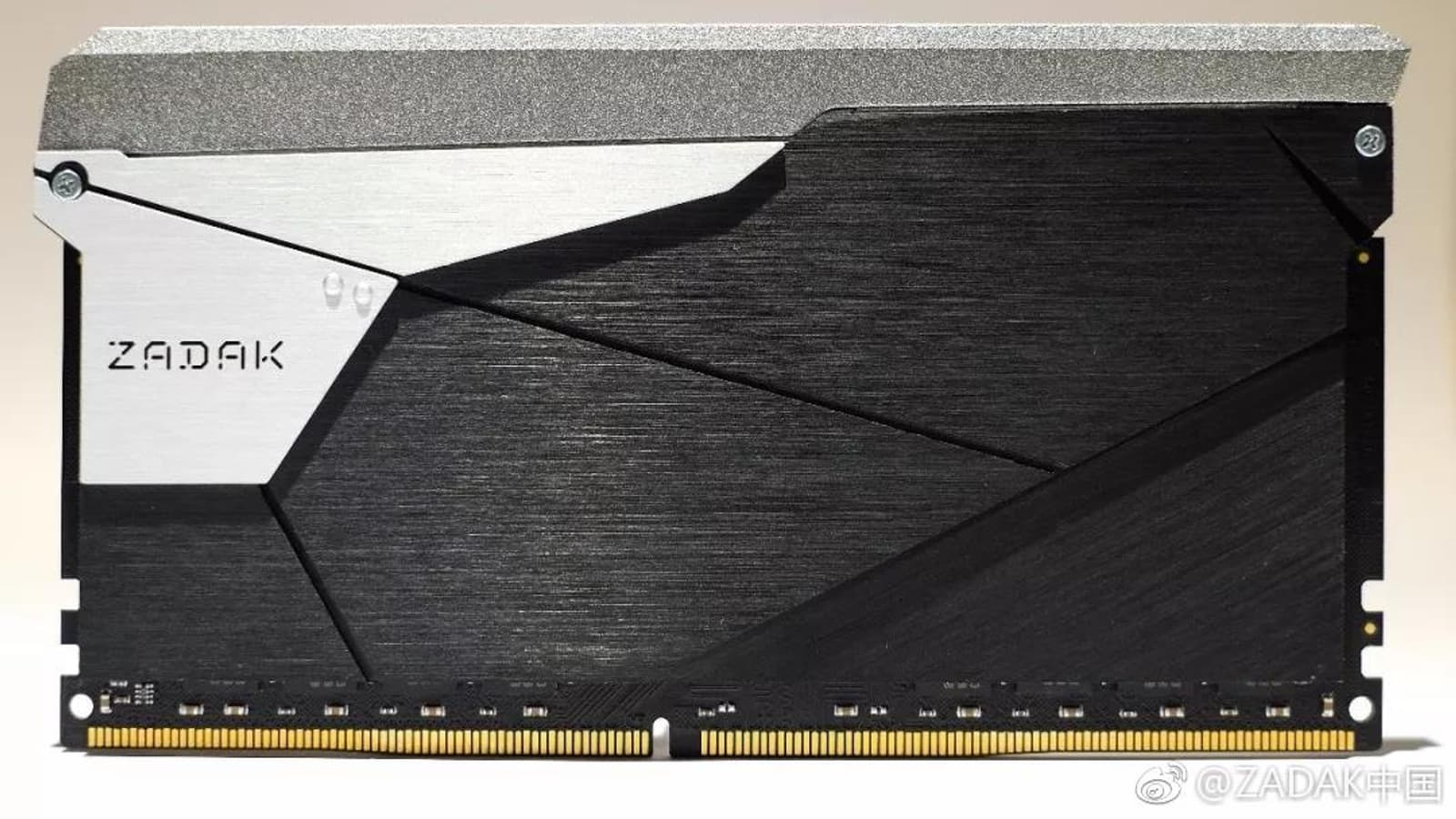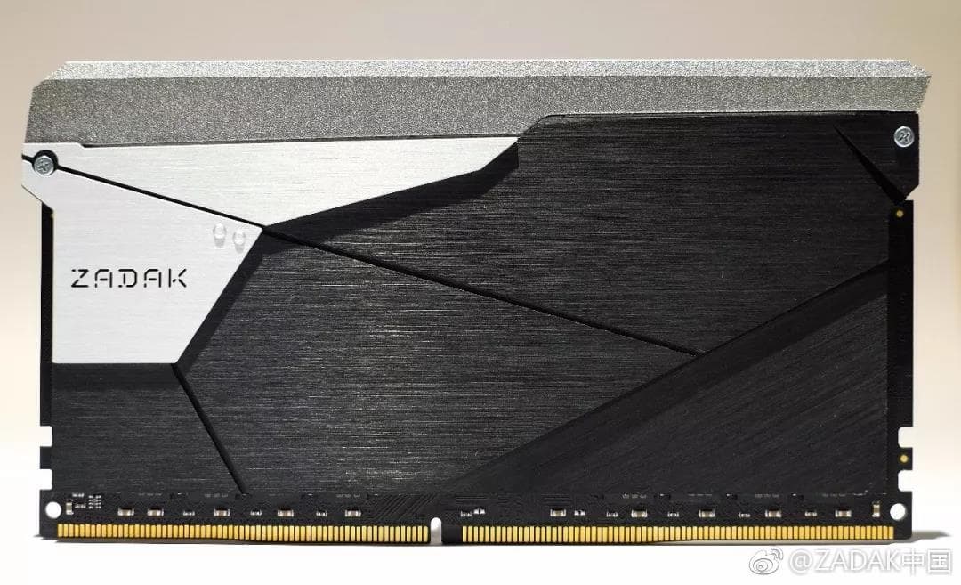 Решение Zadak 511, названное Zadak Shield DC Aura 2 RGB, – это один-единственный модуль памяти DDR4-3200 МГц объемом 32 ГБ, работающий с напряжением 1,35 В и задержками CL14-14-14-34. На каждой стороне печатной платы (она, само собой, нестандартная) размещено по 16 микросхем (предположительно, производства Samsung) объемом 1 ГБ каждая. Чтобы разместить такое количество чипов, потребовалось увеличить высоту модуля, что хорошо видно на картинке ниже.