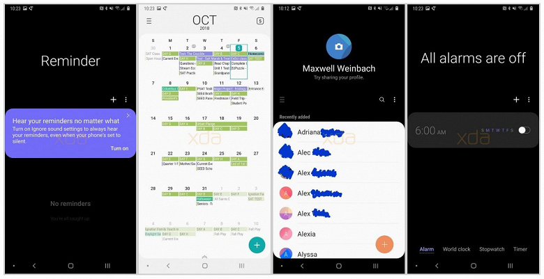 Многие родные приложения Samsung получили обновление интерфейса, включая «Сообщения» и «Контакты». В приложении камеры разные режимы съёмки теперь расположены по низу экрана, а функции AR-эмодзи и Bixby Vision перенесены наверх. Жестовое управление используется, в том числе, в настройках, но пока не всегда работает.