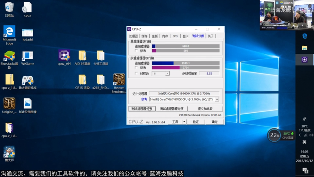 - Core i5-9600K, штатные частоты: 528,8 (однопоточный режим), 2919,1 (многопоточный режим);