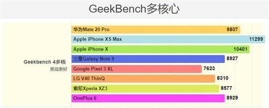В тесте GeekBench новинка уступила Samsung Galaxy Note 9 в однопоточном режиме, но показала лучший результат в многопоточном. В обоих случаях Huawei Mate 20 Pro проиграл iPhone X и iPhone XS Max.