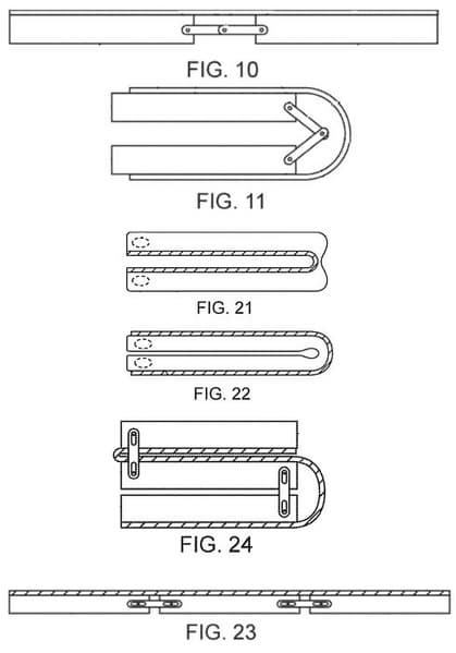 По мнению изобретателей, электронные устройства могут иметь корпуса из нескольких частей на шарнирном соединении. В патенте перечислены всевозможные варианты этих шарниров, включая «шарниры на основе гибких конструкций». Поверх сочленения может быть размещен гибкий дисплей. Когда части корпуса поворачиваются относительно друг друга, гибкий дисплей изгибается. В сложенном состоянии он может оказываться внутри или снаружи.