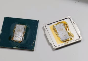 Замена штатного термоинтерфейса жидкометаллическим компаундом Thermal Grizzly Conductonaut позволила снизить температуру Intel Core i9-9900K на 9°С