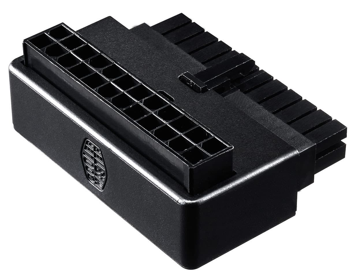 Компания Cooler Master объявила о выпуске адаптера ATX 24 Pin 90°. Он позволяет аккуратнее уложить кабели в системном блоке, расположив 24-контактный разъем ATX параллельно плоскости системной платы.