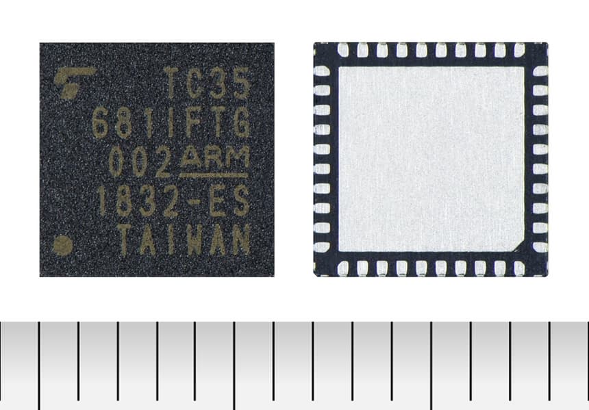 К достоинствам TC35681IFTG отнесено наличие 18 линий общего назначения (GPIO) и нескольких интерфейсов, включая SPI, I2C и двухканальный приемопередатчик UART, поддерживающий скорости до 921,6 Кбит/с. Линии GPIO обеспечивают доступ к интерфейсу пробуждения, четырехканальному генератору ШИМ и пятиканальному АЦП. Встроенный преобразователь постоянного напряжения и цепи регулировки напряжения позволяют своими силами получить требуемые значения напряжений питания из одного напряжения, поступающего от внешнего источника.