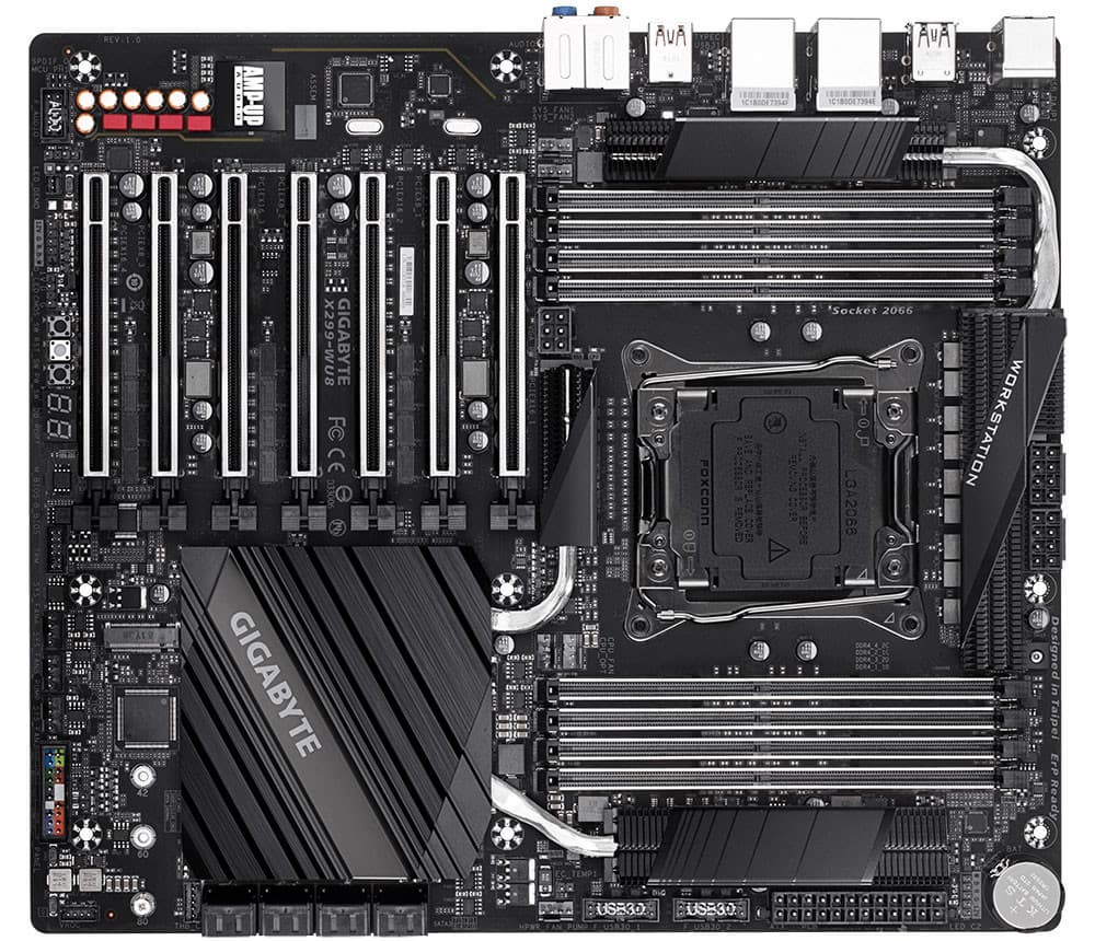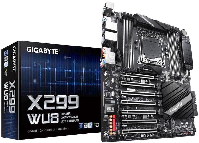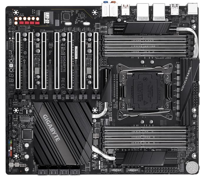 Каталог компании Gigabyte пополнила системная плата X299-WU8 типоразмера CEB (305 х 267 мм). Очевидно, она построена на чипсете Intel X299 Express и рассчитана на процессоры Intel Core X в исполнении LGA2066.