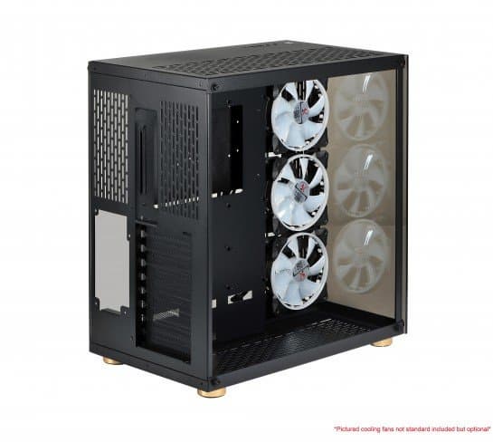 Особенностью корпуса, связанной с его увеличенной шириной, является компоновка с разделением на два отсека по ширине. В одном находится системная плата и карты расширения, для которых предусмотрено девять посадочных мест на монтажной панели, а во втором — блок питания. По словам производителя, это позволяет аккуратнее проложить кабели и улучшает вентиляцию. Кстати, что касается вентиляции, в корпусе есть места для установки девяти вентиляторов типоразмера 120 мм. В случае использования СЖО возможна установка радиаторов длиной до 240 мм.
