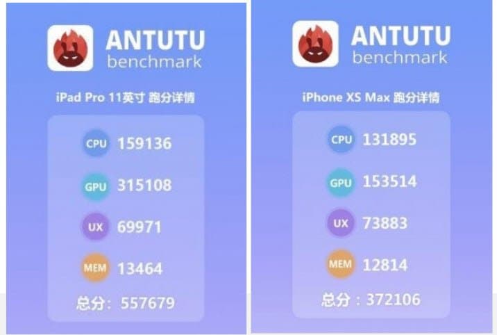 Итоговый результат показал, что Apple iPad Pro заработал 557 679 баллов, что значительно больше, чем удалось заработать iPhone XS и iPhone XS Max.