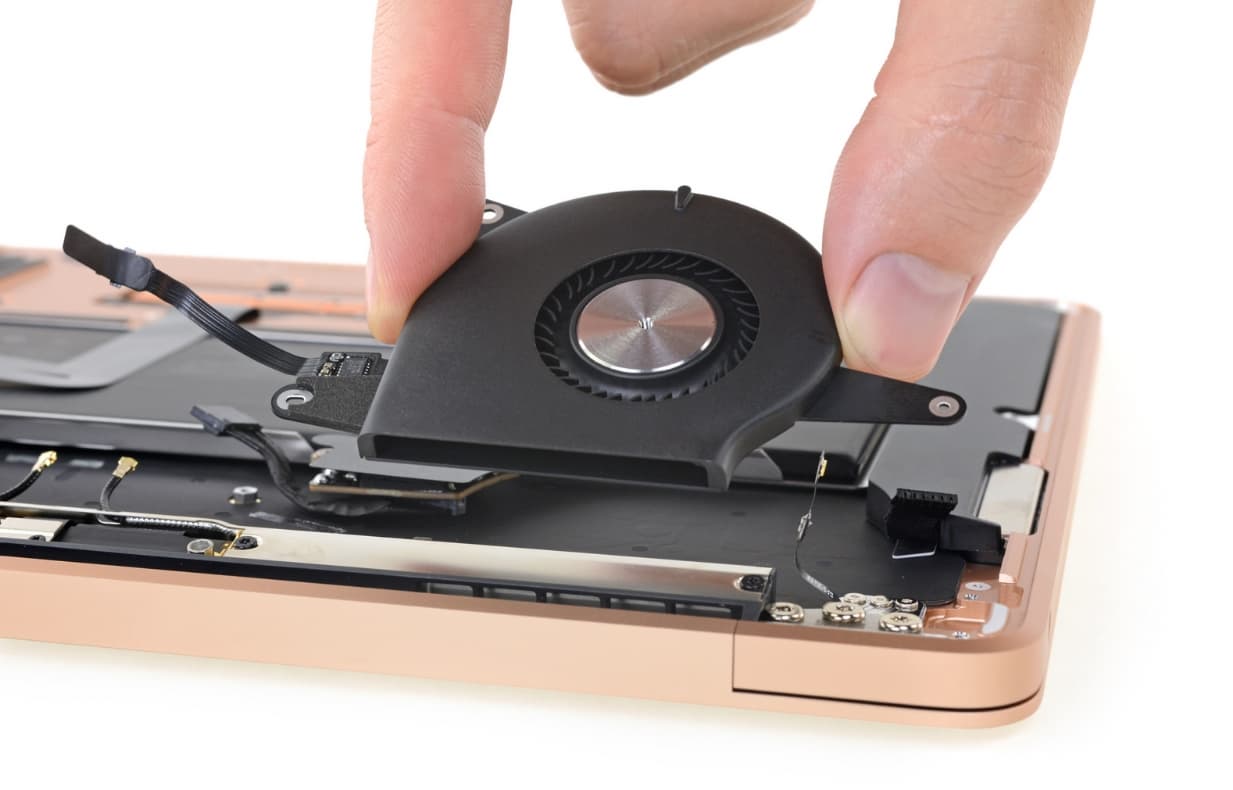Также стоит отметить наличие небольшого вентилятора, то есть пассивной системой Apple не ограничилась.