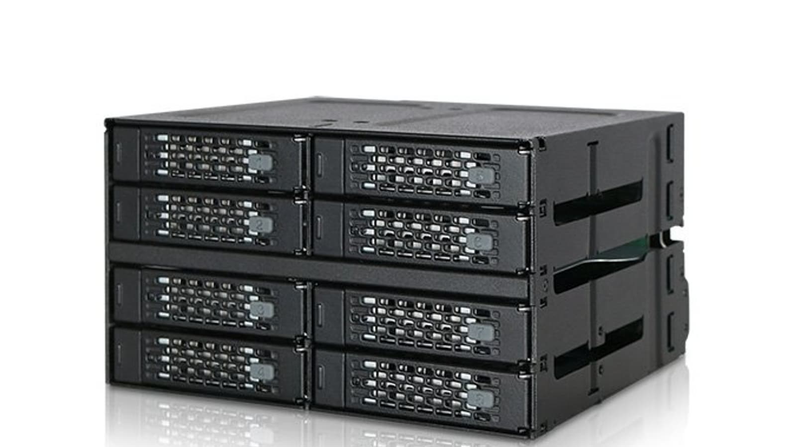 Ассортимент Icy Dock пополнила новинка под названием ToughArmor MB508SP-B. Она представляет собой корзину на восемь накопителей типоразмера 2,5 дюйма, рассчитанную на установку в два смежных отсека типоразмера 5,25 дюйма.