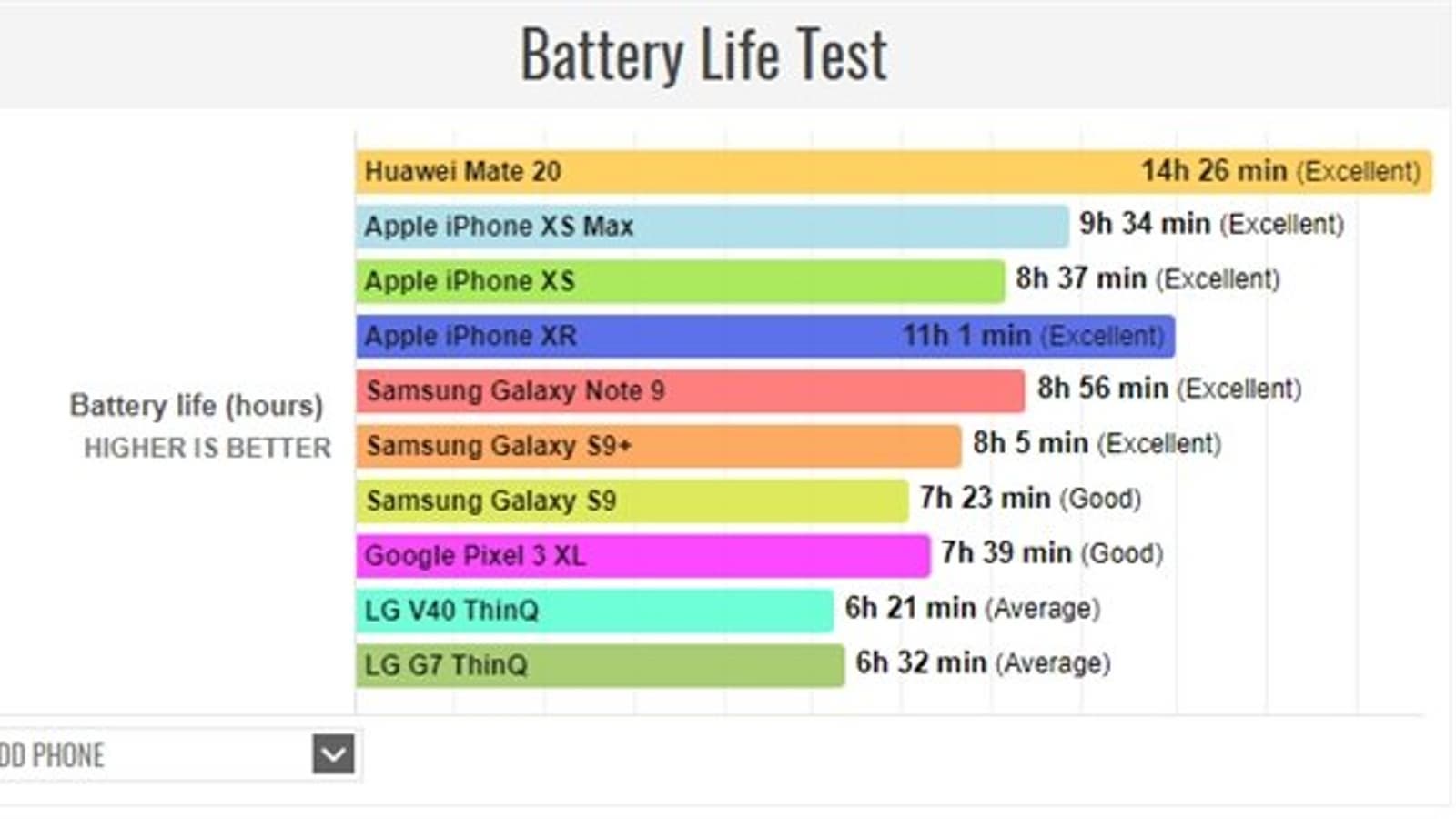 Новый смартфон Huawei Mate 20 был протестирован в сравнении с другими популярными флагманскими моделями, результаты времени работы всех смартфонов вы найдете ниже. К сожалению, конкретные условия тестирования не сообщаются. Но итоговый результат впечатляет.