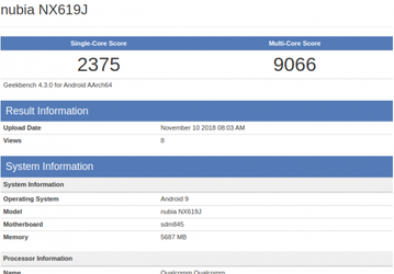 Новый смартфон Nubia набрал более 9000 баллов в Geekbench