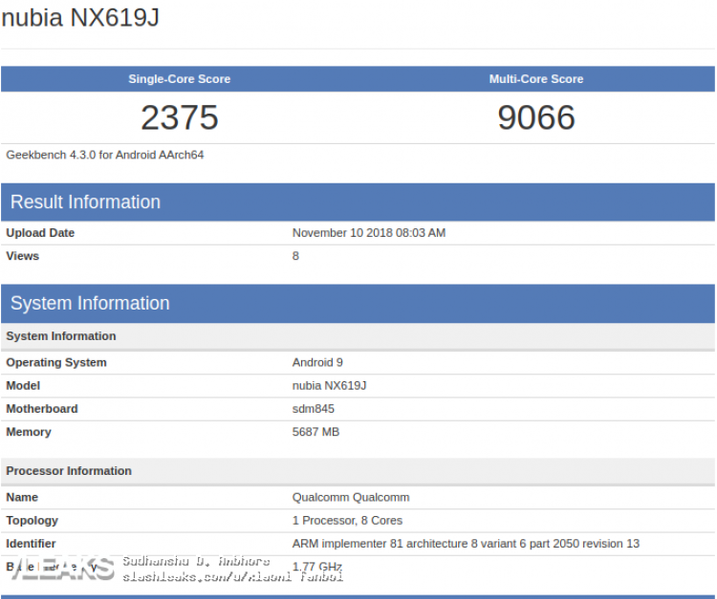 Источники опубликовал результаты тестирования нового смартфона Nubia с модельным номером NX619J.