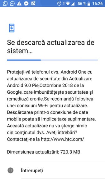 Этот смартфон, надо сказать, не самый популярный из всех моделей HTC – новость о нем не удостоилась ни одного комментария со стороны наших читателей. Тем не менее, аппарат проходит по программе Android One – этим, скорее всего, и обусловлено его первоочередное обновление до Android Pie. Оно, к слову, занимает 720 МБ и включает в себя октябрьские обновления безопасности.