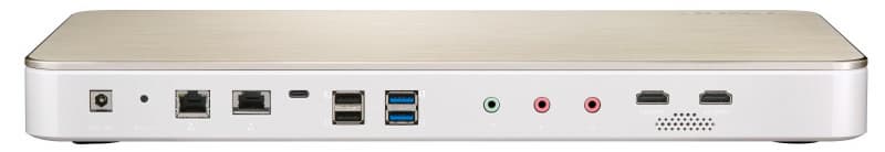 Помимо двух жестких дисков в корпусе HS-453DX можно установить еще два SSD типоразмера M.2. Также в конфигурации устройства один громкоговоритель, два разъема RJ-45 (один соединен с адаптером 10 Gigabit Ethernet, другой — Gigabit Ethernet), по два порта USB 2.0 и USB 3.0, а также по одному HDMI 1.4b и USB 3.0 Type-C.