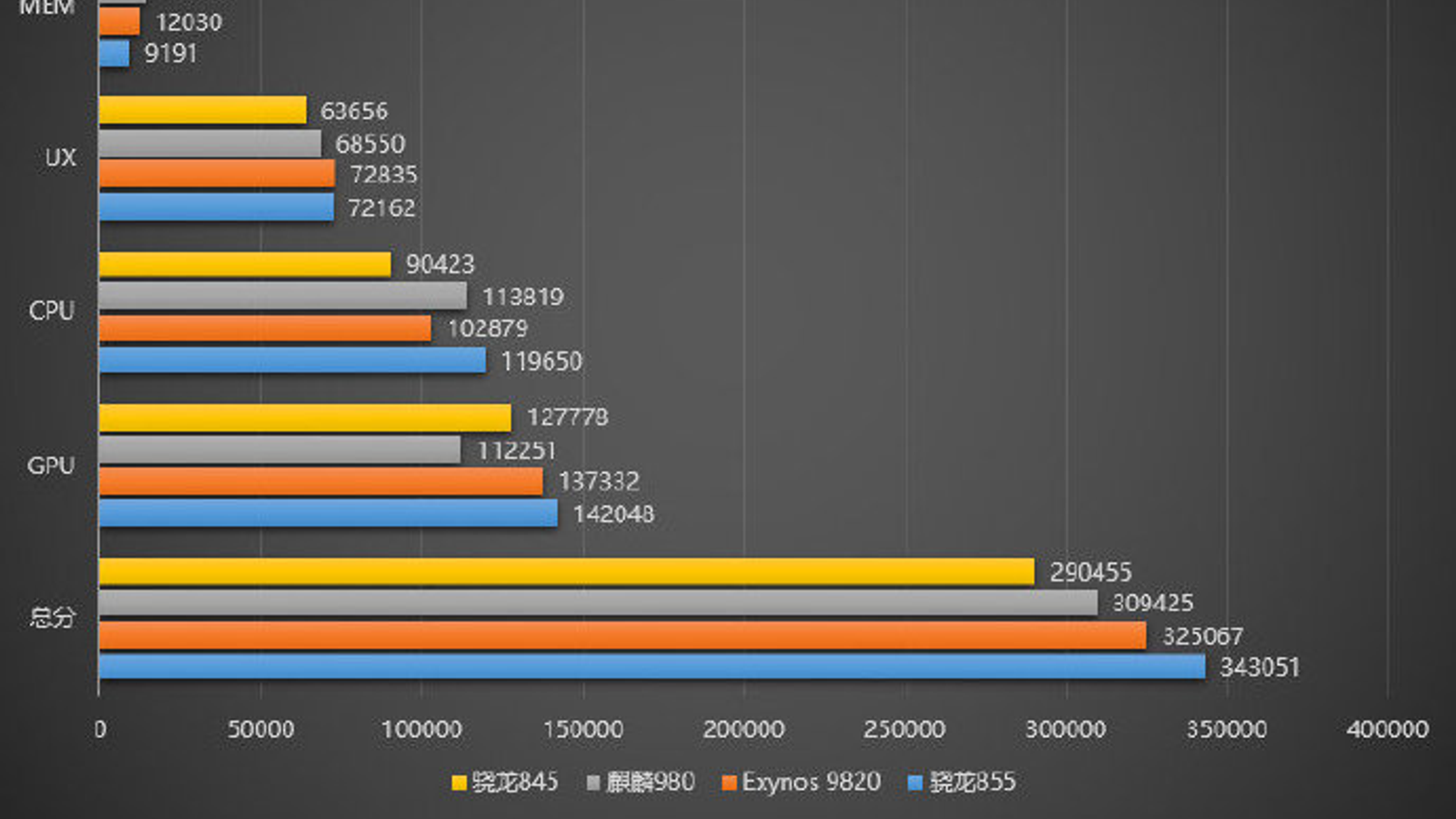 В общем зачете места распределились следующим образом: Snapdragon 855, Exynos 9820, Kirin 980 и Snapdragon 845. Они набрали 343051, 325067, 309425 и 290455 баллов соответственно.
