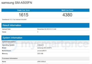 Samsung Galaxy A50 засветился в бенчмарке Geekbench
