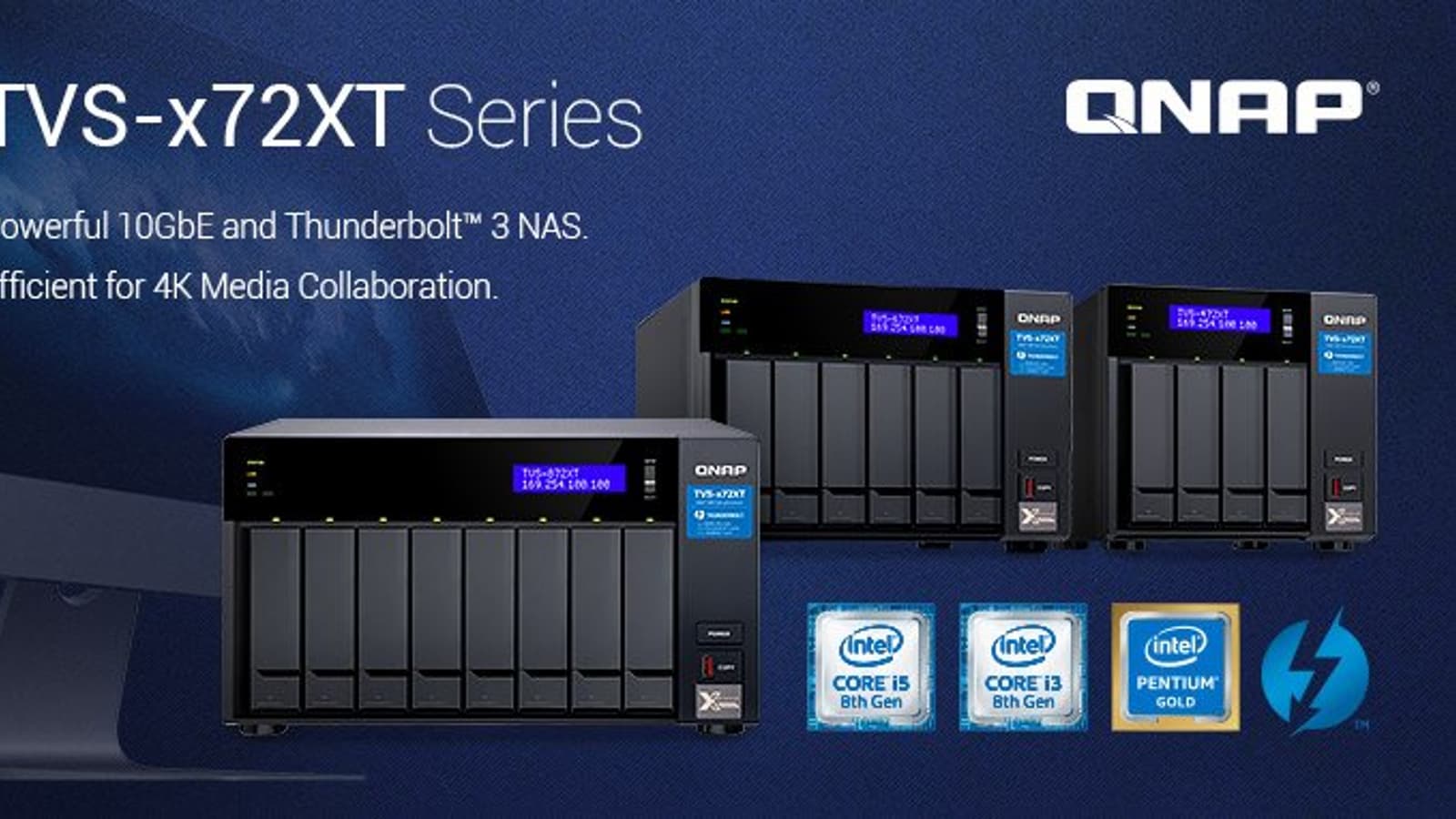Компания QNAP Systems объявила о выпуске серии хранилищ с сетевым подключением TVS-x72XT. Особенностью этих NAS на процессорах Intel является наличие портв 10GbE (10GBASE-T) и двух портов Thunderbolt 3.