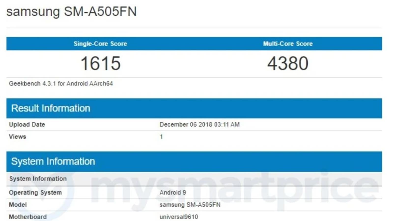 Мы уже несколько раз писали о подготовке компанией Samsung смартфона среднего уровня Galaxy A50, а сейчас устройство засветилось в базе данных бенчмарка Geekbench, благодаря чему мы знаем кое-что о характеристиках и производительности модели.