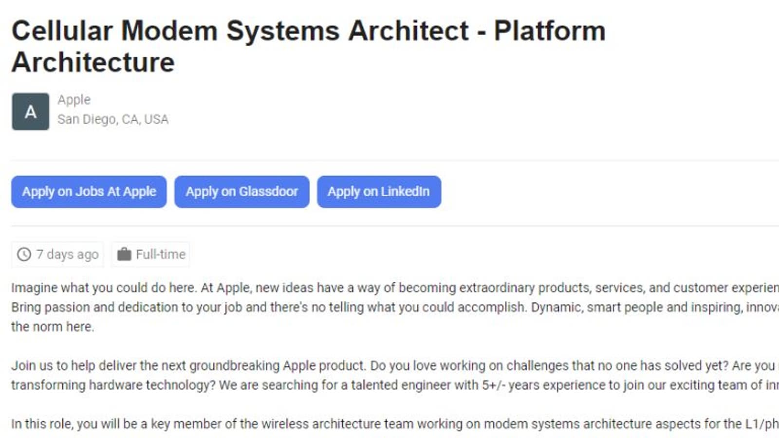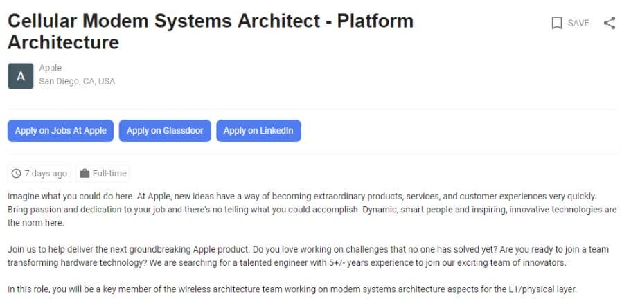 Слухи, что Apple рассчитывает разработать собственный сотовый модем и отказаться от использования модемов Qualcomm, получили подтверждение. Компания опубликовала объявление о приеме на работу архитектора сотовых модемов. В объявлении сказано, что соискатель получит возможность «помочь в создании нового революционного продукта Apple».