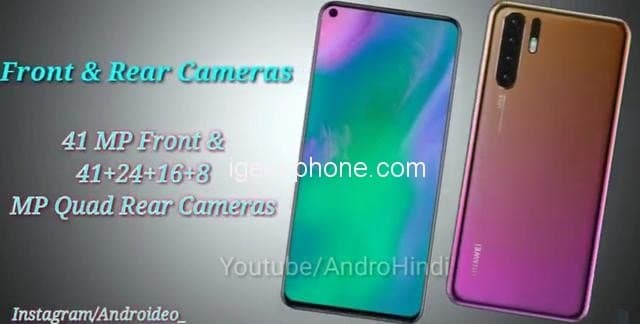 По данным источника, Huawei P30 Pro получит следующие характеристики: экран AMOLED диагональю 6,41 дюйма и со встроенным под него дактилоскопическим датчиком, однокристальную систему Kirin 980, 6, 8 или 10 ГБ оперативной памяти, 128, 256 или 512 ГБ флэш-памяти, тыльную камеру с четырьмя модулями Leica с датчиками разрешением 41 Мп, 24 Мп, 16 и 8 Мп, оптической стабилизацией изображения и съёмкой до 960 к/с, аккумулятор ёмкостью 4000 мА·ч с быстрой 40-ваттной зарядкой и 15-ваттной беспроводной зарядкой, операционную систему Android 9.0 Pie.