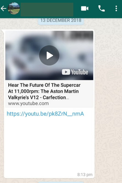 При активации функции пользователи могут смотреть видеоролики из Instagram, YouTube и Facebook в окошке, которое располагается прямо над чатом в WhatsApp. Функция работает в индивидуальных и групповых чатах.