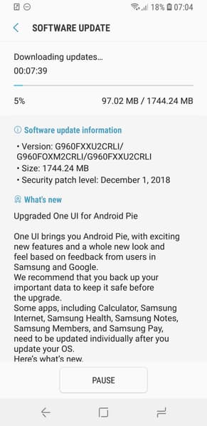 Номера прошивки — G960FXXU2CRLI и G965FXXU2CRLI для Galaxy S9 и Galaxy S9+ соответственно. Она приносит не только Android Pie, но и новый пользовательский интерфейс One UI. Также прошивка включает декабрьское обновление безопасности Google.