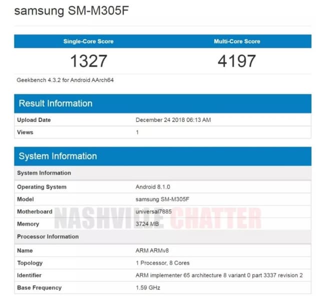 К примеру, мы уже знаем, что Galaxy M20 будет основан на SoC Exynos 7885. База данных Geekbench указывает на то, что модель Galaxy M30 получит эту же платформу. То есть отличаться будет чем-то иным, к примеру, размерами экрана и камерой.