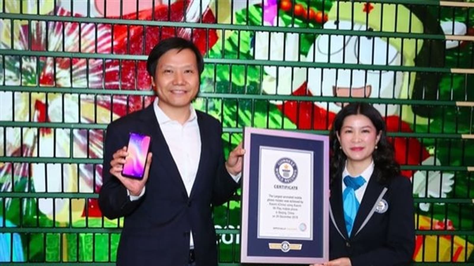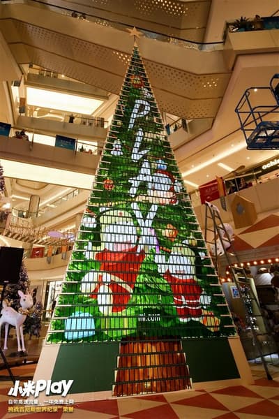 Официально рекорд называется «Крупнейшая анимированная мозаика из мобильных телефонов», а на деле представляет выстроенное в форме елки высотой 8 метров интерактивное табло из 1005 смартфонов Play. Конструкция была подготовлена заранее, Лэй Цзюнь лишь установил недостающие элементы, после чего рекорд и был зафиксирован.