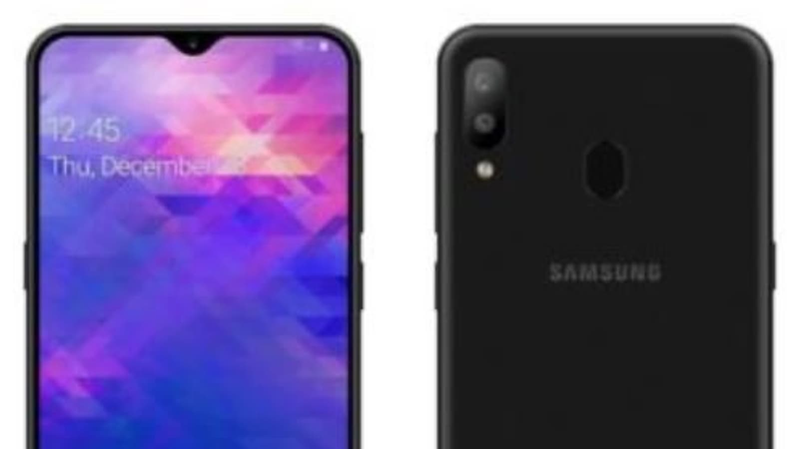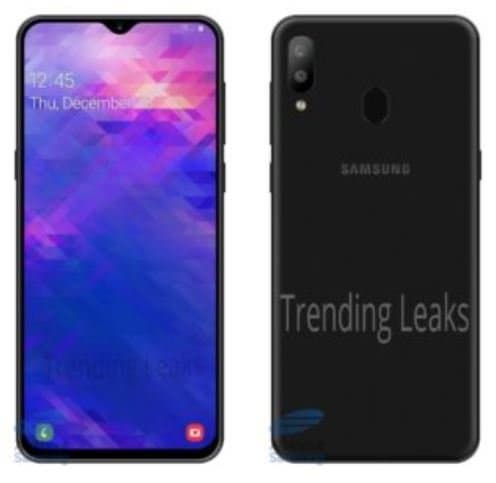 Как видно, аппарат получил экран с каплевидным вырезом — примерно так же должна быть оформлена фронтальная панель Galaxy M20. На тыльной панели — сканер отпечатков пальцев в центре и сдвоенная камера в углу. Также можно разглядеть дополнительную клавишу на боковой грани — возможно, для умного помощника Bixby.