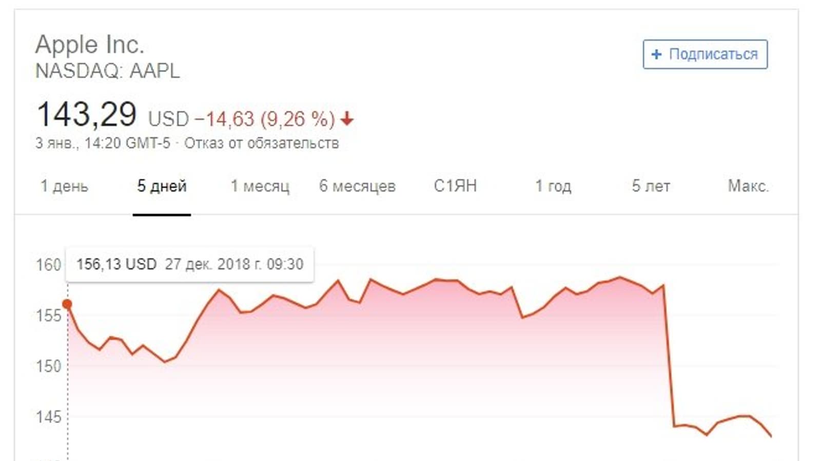 На данный момент акции Apple упали до уровня осени 2017 года.
