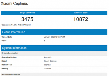 Смартфон Xiaomi Cepheus с 6 ГБ ОЗУ и SoC Snapdragon 855 протестирован в Geekbench