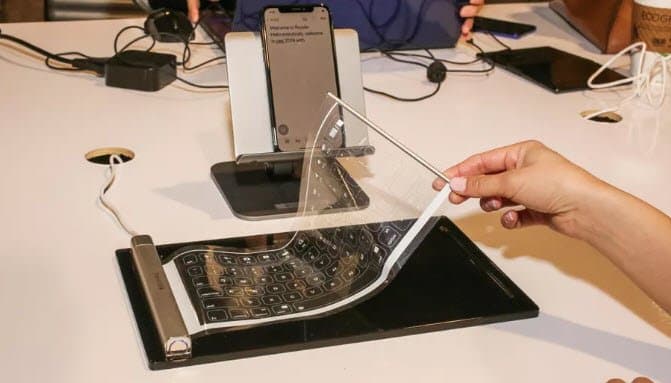 Теперь эта же компания на выставке потребительской электроники Consumer Electronic Show 2019, которая открылась в Лас-Вегасе, представила QWERTY-клавиатуру, которая сворачивается в свиток.