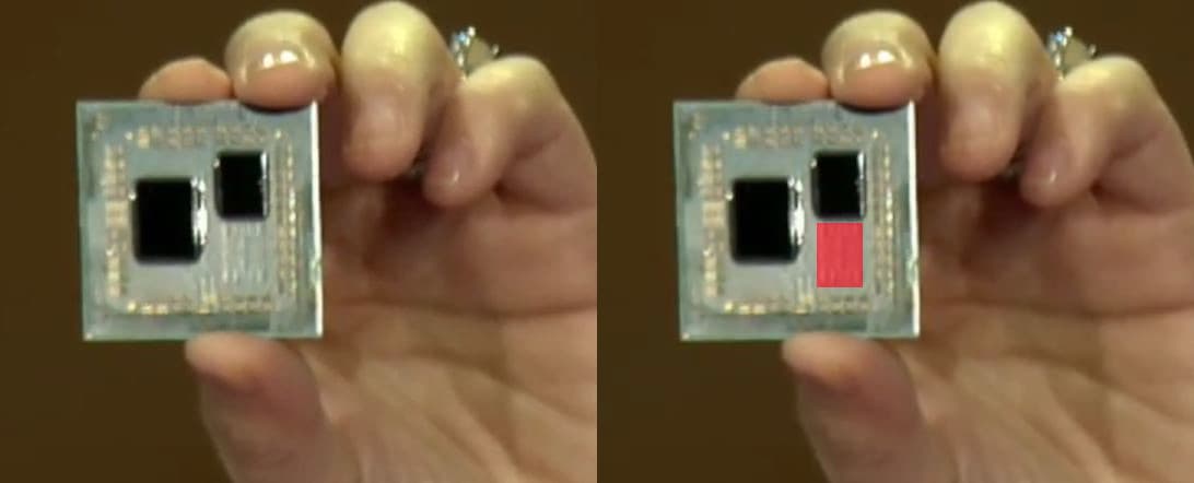 Как мы уже сообщали, генеральный директор AMD Лиза Су (Lisa Su) продемонстрировала на CES 2019 процессор Ryzen третьего поколения на микроархитектуре Zen 2. На опубликованных снимках было видно, что изделие в исполнении AM4 включает два кристалла. Собственно восьмиядерный процессор, изготовленный по нормам 7 нм, находится на меньшем из них. Больший кристалл — схема ввода-вывода, изготовленная по нормам 14 нм, которая включает контроллеры памяти, шины PCIe и других интерфейсов. Наши коллеги обратили внимание на взаимное расположение кристаллов.