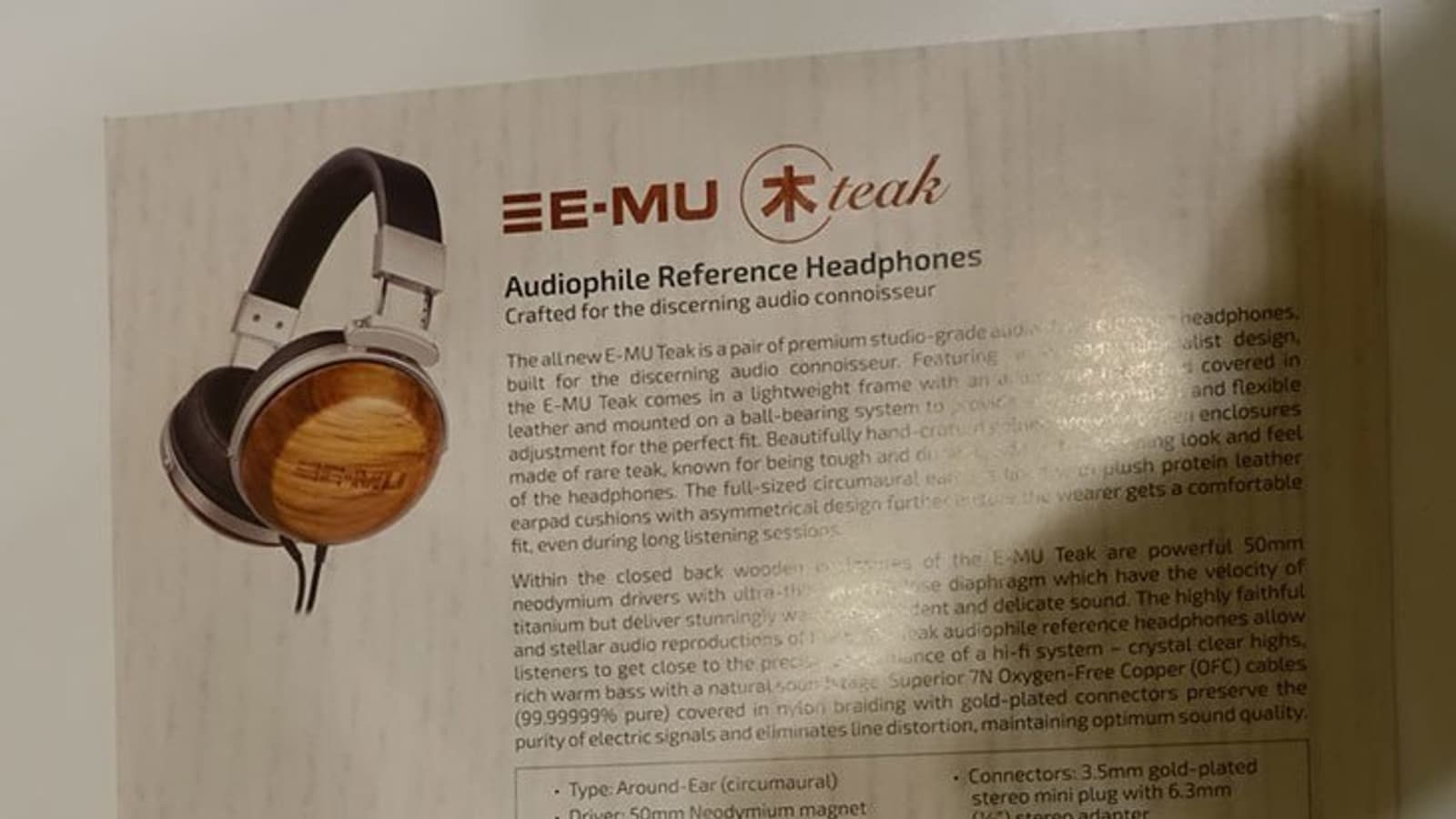 В модели E-MU Teak используются 50-миллиметровые излучатели из биоцеллюлозы, в E-MU Walnut — 40-миллиметровые.