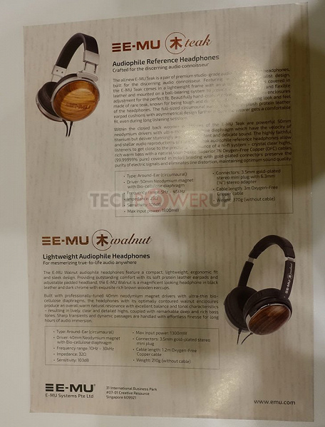 Под маркой Creative E-MU представлены две модели наушников, адресованные аудиофилам. Общей особенностью моделей E-MU Teak и E-MU Walnut является конструкция со сменными деревянными корпусами.